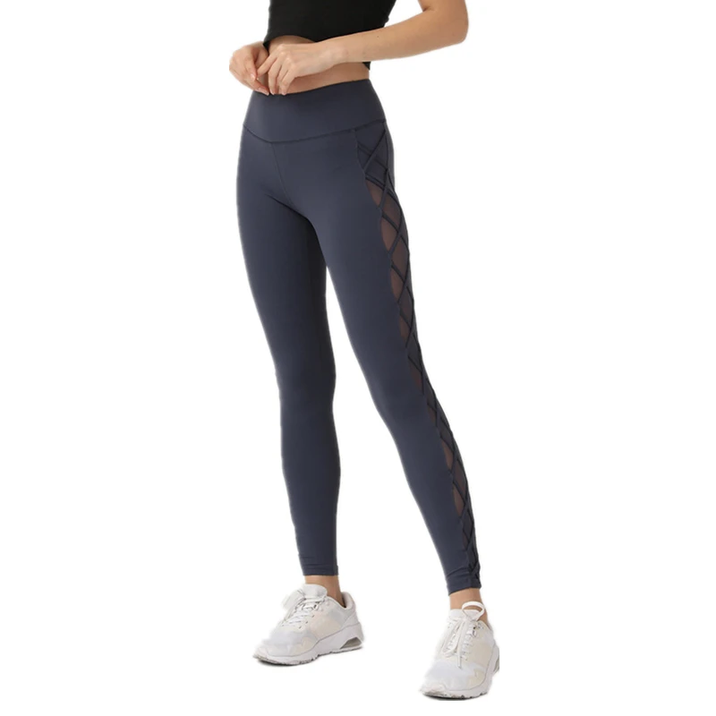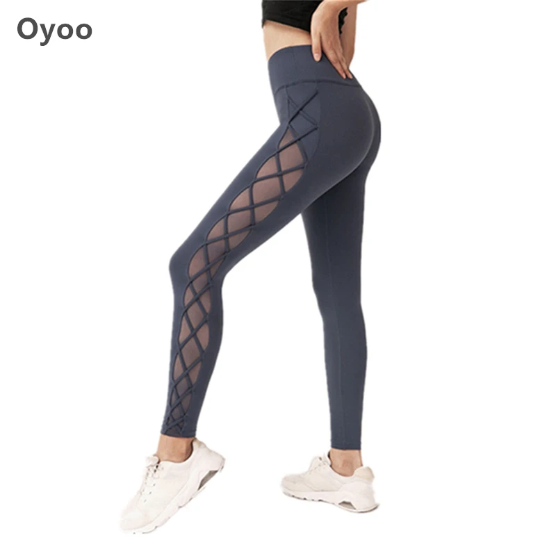 Best For You Oyoo Brushed Fabric High Waist Yoga Pants Side Mesh Crisscorss Gym Sport Leggings Jogging Femme Wor