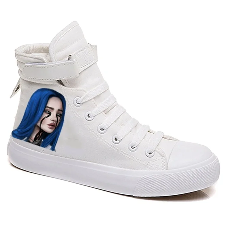 Buy Now Hot Music Singer Star Billie Eilish Velcro Lace Hightop Sneakers Comfortable Canvas Shoes Women Kpo