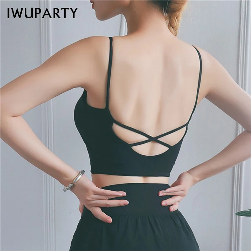 Discount 2019 Sexy Back Cross Thin Shoulder Crop Top Gym Black Pink High Impact Sports Bra Women Fitness Clo