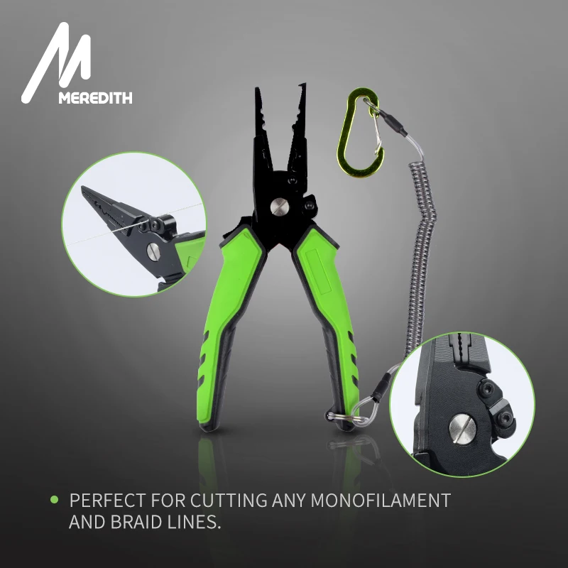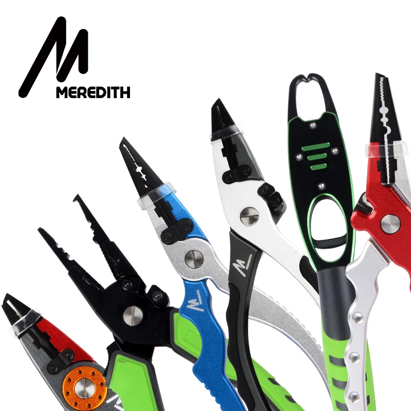 Limited Edition MEREDITH Aluminum Alloy Fishing Pliers Split Ring Cutter Fishing Lip Grip Weight Scale Sheath&Retr