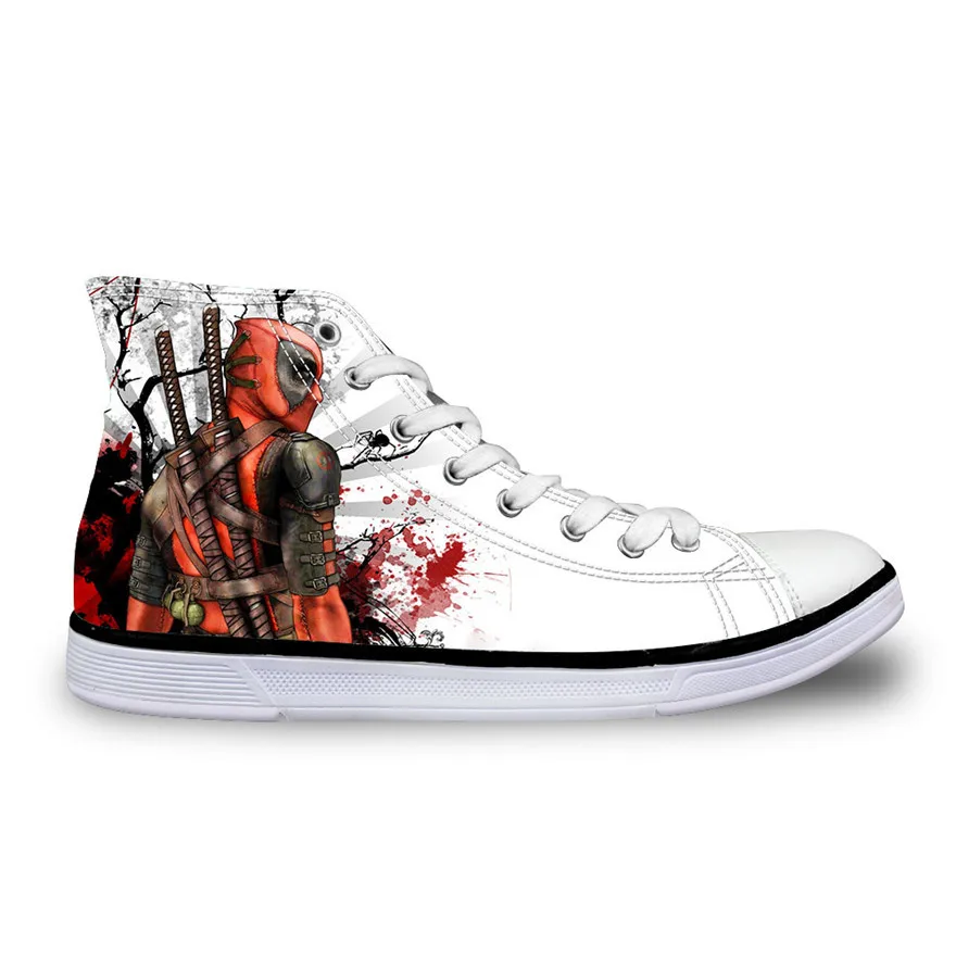 ELVISWORDS Men's Vulcanized Shoes Cool Super Hero Deadpool Printed High top Lace Up Classic Canvas only US $27.99