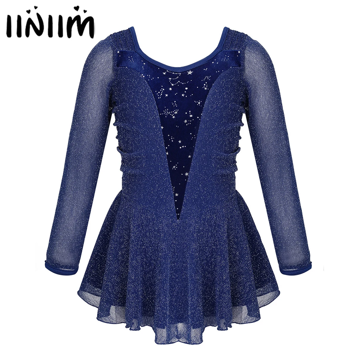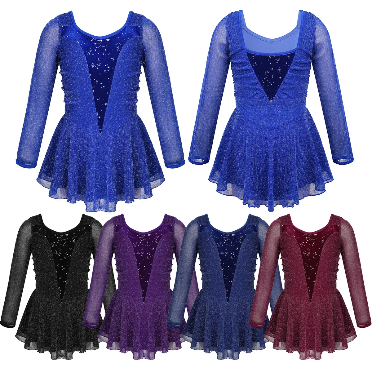 Kids Girls Sequins Tulle Splice Figure Skating Dress Roller Ice Skating Ballet Dancewear Gym Leotard Dress with Wrist Sleeves : Click here