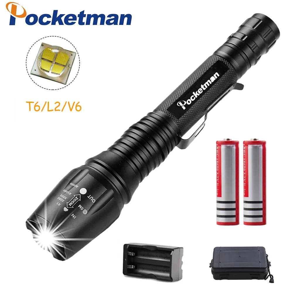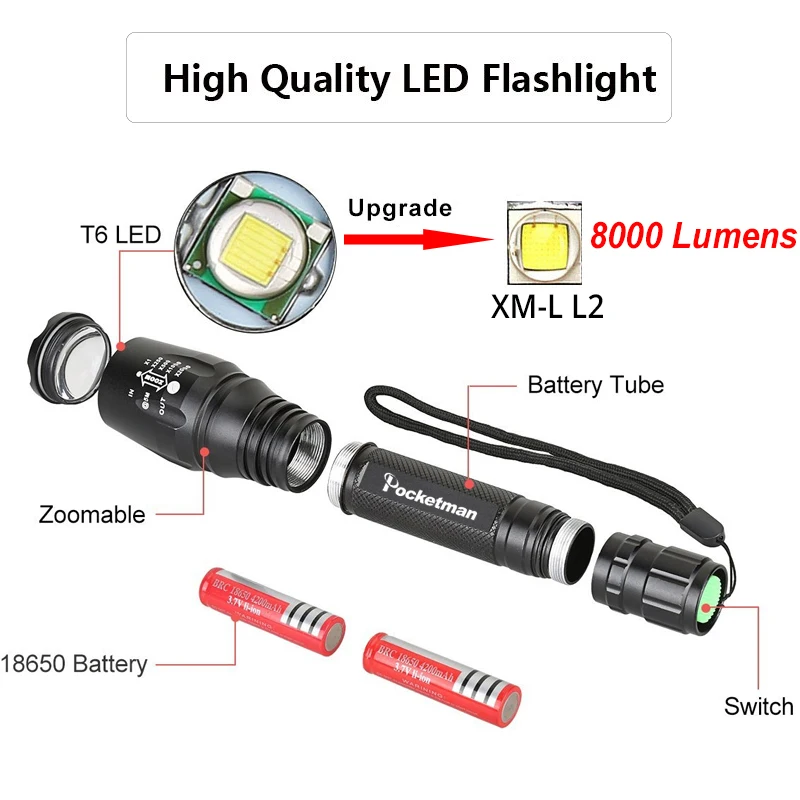 LED Rechargeable Flashlight Pocketman XML T6 linterna torch 4000 lumens 18650 Battery Outdoor Camping Powerful Led Flashlight : Click here