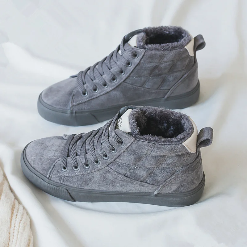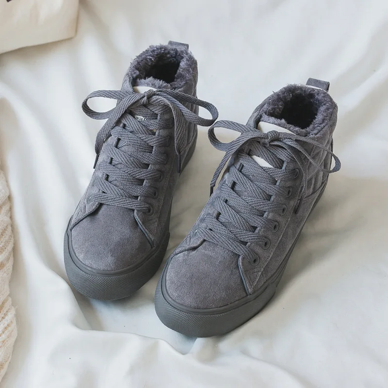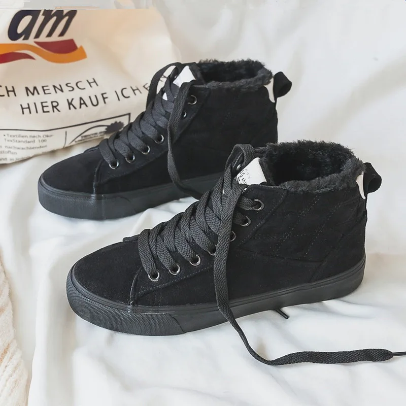 Shoes Winter Girl Cotton Shoes Fur Lining Flat Bottom Warm Suede Casual Shoes High Uppers Thickened Suede Canvas Sneakers Plush : Click here